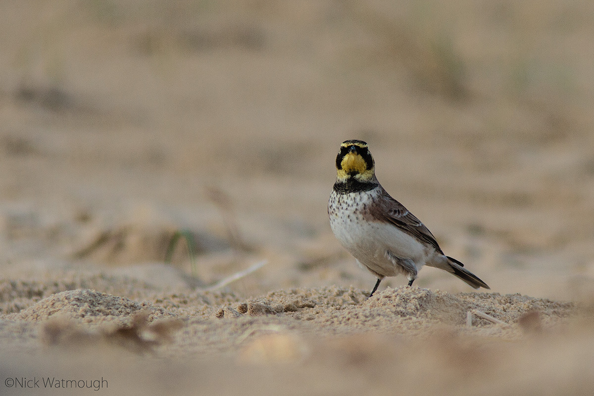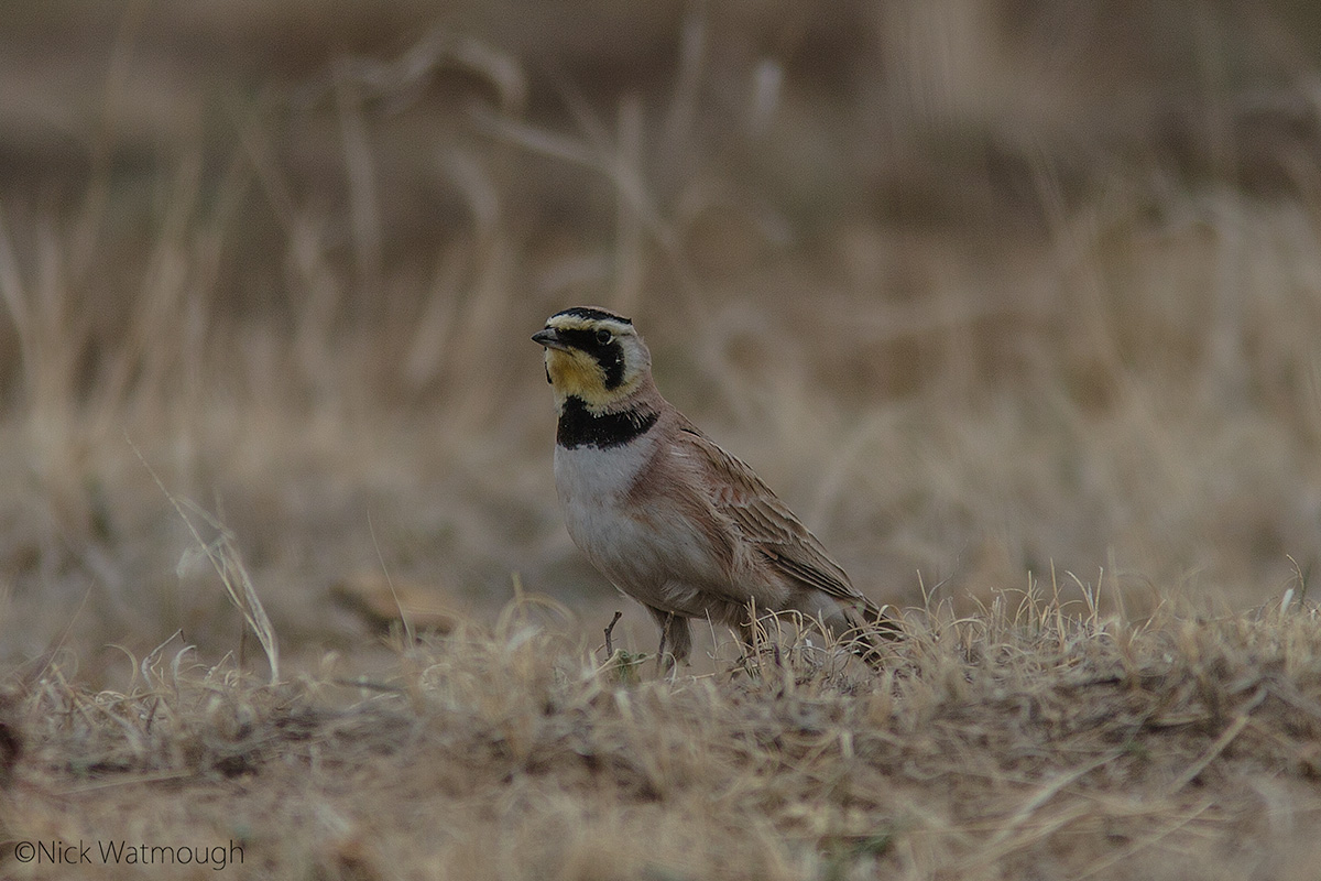 Horned Lark, (aka Shore Lark) is a species that is widely distributed across the Northern Hemisphere with some forty different races described on the basis of variations in plumage and biometrics. It has been proposed that the Old World forms should be treated as five different species and the North American forms, of which there are >20, as a sixth There is useful summary and discussion of this work on the Birding Frontiers site. The main question for anybody going to see the Staines bird are whether on the basis of plumage it can be assigned to one of the of the North American forms rather than the familiar yellow faced form Eremophila alpestris flava which winters in small numbers around the UK coast and currently the only one on the British List. A secondary issue, is whether in he fullness of time the North American forms might be split as a separate species and allow our British and WP lists to advance by one!