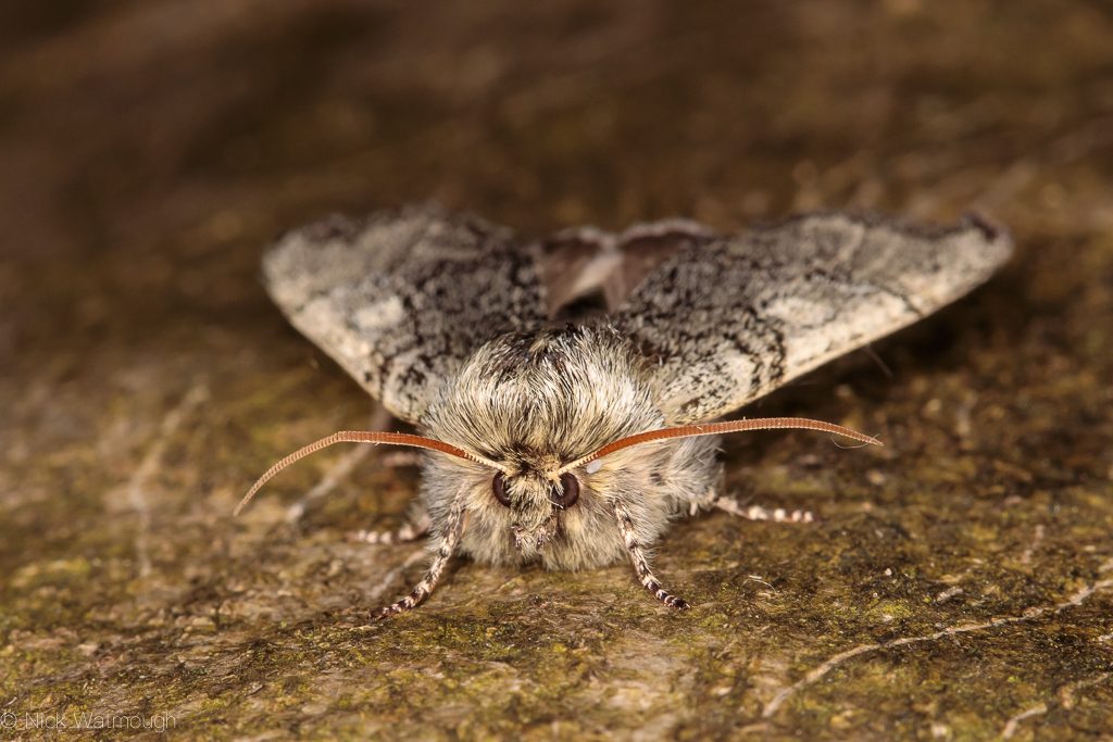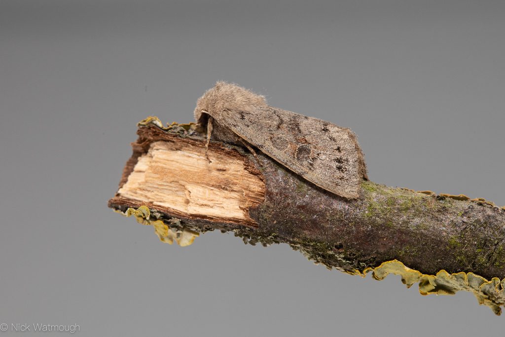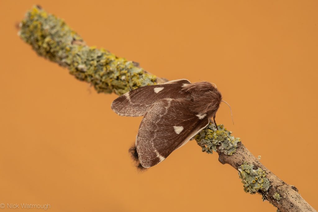 Fortunately the pair of females at Litcham arrived at the light-trap set in the garden of Keith Kerr. Keith is a top entomologist and a leading light of the Norwich moth-ers WhatsApp group. And with typical generosity he invited visitors. I couldn’t make it, but I was based at home the following day to receive a delivery. Consequently I asked if Ian Robinson could bring at one of the Small Eggars back to Norwich along with a Lead-coloured Drab. I collected the three visitors from Ian on Thursday evening. As a result Friday morning saw a near constant ringing of the doorbell. A steady procession of visitors from Norwich and further afield turned up at my front door. Not only to admire the Eggars but also discover how to tell Lead-coloured Drab from its more abundant and infinitely variable Clouded relative.
