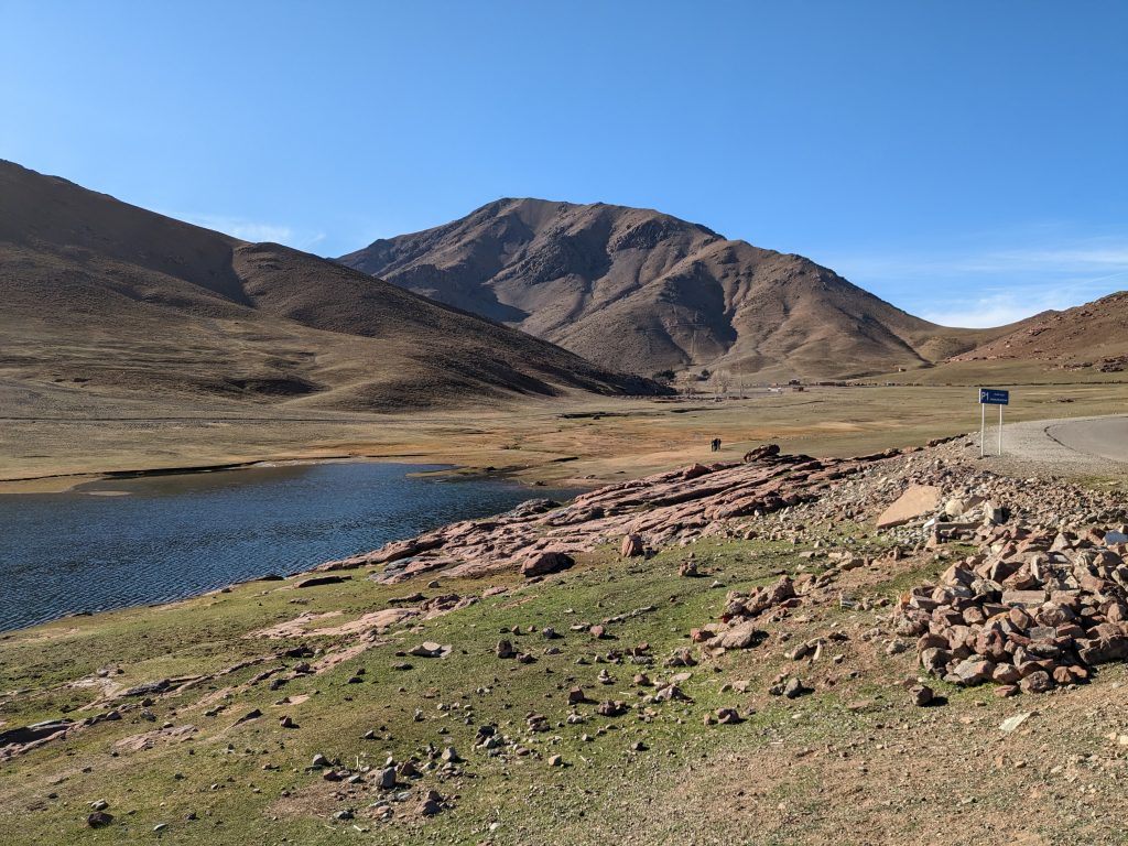 Ouakimeden is a ski resort in the High Atlas. It known in Western Palearctic birding circles as the place to search the snowline for high altitude Atlas species . There was just one problem – no snow! Undeterred I followed the example Hamid (Guyuin Birding Tours) and his group onto the flat expanse of short turf above the lake.
