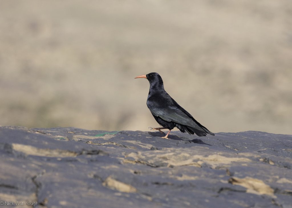 Red-billed Chough was the most obvious species, whilst White Wagtail, Meadow and Water Pipits fed on the ice melt. Black Wheatears and Black Redstarts flitted around the boulders.