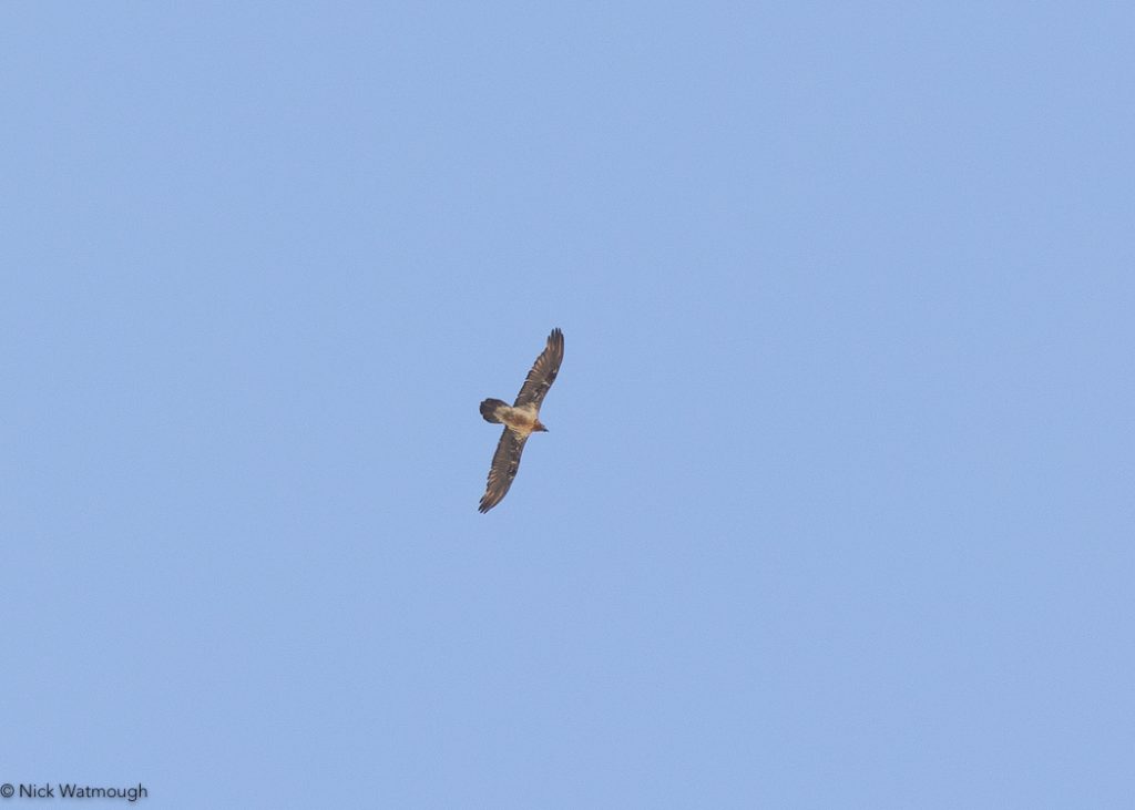 I managed to raise Graham on WhatsApp (the 4G network is generally good throughout Armenia). Rather than follow in my footsteps I suggested an alternative and possibly easier route. Unfortunately by the time he arrived the wheatears had completely disappeared. The site was now very busy and we returned to town to regroup. This proved to be inspired. As we got out the car by the B&B and looked up there was a Lammergier over our heads.