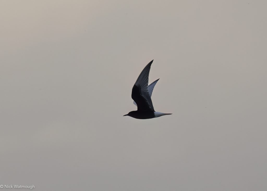 Driving slowly along the bunds between the ponds we encountered good numbers of herons and Pygmy Comorants in flight. Whilst White-winged Black Terns seemed to be everywhere.