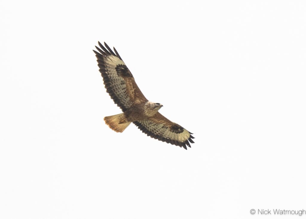 Overhead a few Long-legged Buzzards patrolled and a late party of Honey Buzzards hurried north.